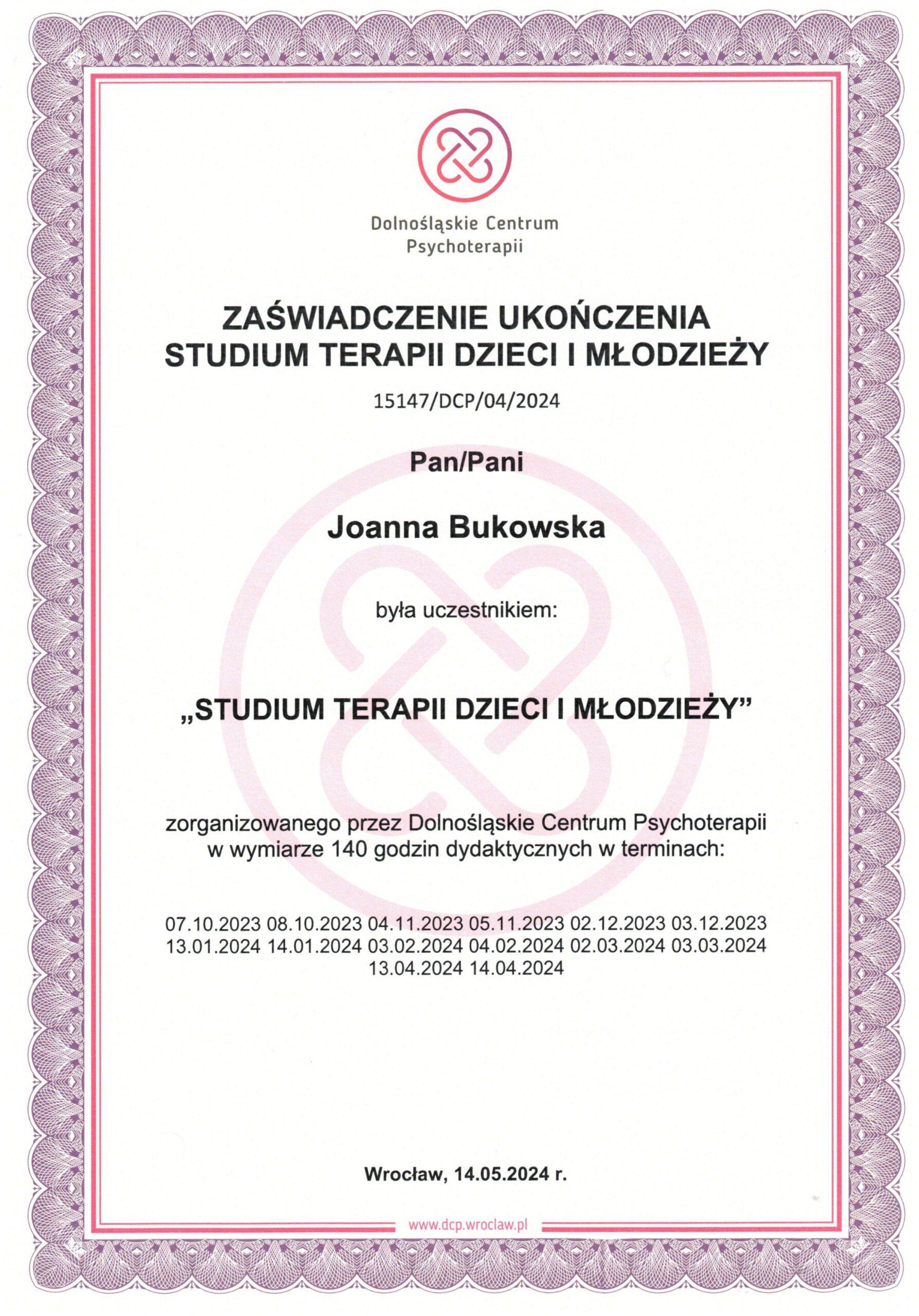 Posiadam tytuł magistra w zakresie poradnictwa psychologiczno-pedagogicznego, który ukończyłam na Uniwersytecie im. Adama Mickiewicza w Poznaniu z oceną bardzo dobrą. Jestem pedagogiem z ośmioletnim stażem. Ukończyłam studium terapii dzieci i młodzieży, co pozwala mi jeszcze lepiej rozumieć potrzeby moich uczniów i pacjentów. Jestem absolwentką filologii angielskiej na Uniwersytecie Łódzkim. Swoje doświadczenie zdobyłam pracując w Gabinecie Psychoterapii Droga w Poznaniu. Od lat pracuję jako nauczycielka języka angielskiego w szkole podstawowej, gdzie zdobyłam bogate doświadczenie pedagogiczne. W swojej pracy stawiam na indywidualne podejście do pacjenta, wspieranie jego rozwoju oraz budowanie atmosfery wzajemnego zaufania. Empatia, cierpliwość i zaangażowanie to cechy, które pomagają mi skutecznie wspierać dzieci oraz rodziców zmagających się z rozmaitymi trudnościami wychowawczymi. Prywatnie jestem mamą dwóch energicznych chłopców, dzięki czemu doskonale rozumiem wyzwania, z jakimi mierzą się rodzice na różnych etapach rozwoju dziecka. Wzbogaca to również moje doświadczenie w zakresie wychowania i komunikacji z najmłodszymi. Poddaje swoją pracę terapeutyczną regularnej superwizji.